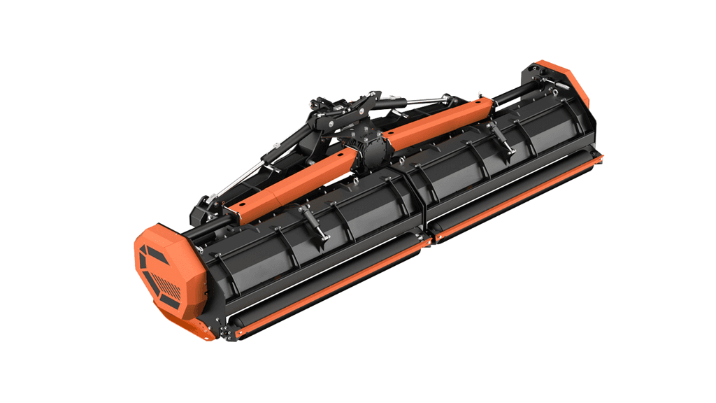 Складной измельчитель-мульчирователь Измельчители растительных остатков серии BF подходят для тракторов мощностью 140 л.с. Рабочая ширина — 6 м. Измельчённая масса равномерно разбрасывается по поверхности, улучшая содержание органического вещества и питательных элементов в почве. После складывания машина легко транспортируется. Раздельно открывающаяся задняя крышка упрощает обслуживание. Общие характеристики: Габариты орудия – 6503×1800×1090 мм Ширина захвата – 6000 мм Скорость вращения вала отбора мощности – 1000 об/мин Количество ремней – 12 Вес – 2832 кг Количество молотков (ножей) – 64 Минимальная мощность трактора –210-250 л.с.