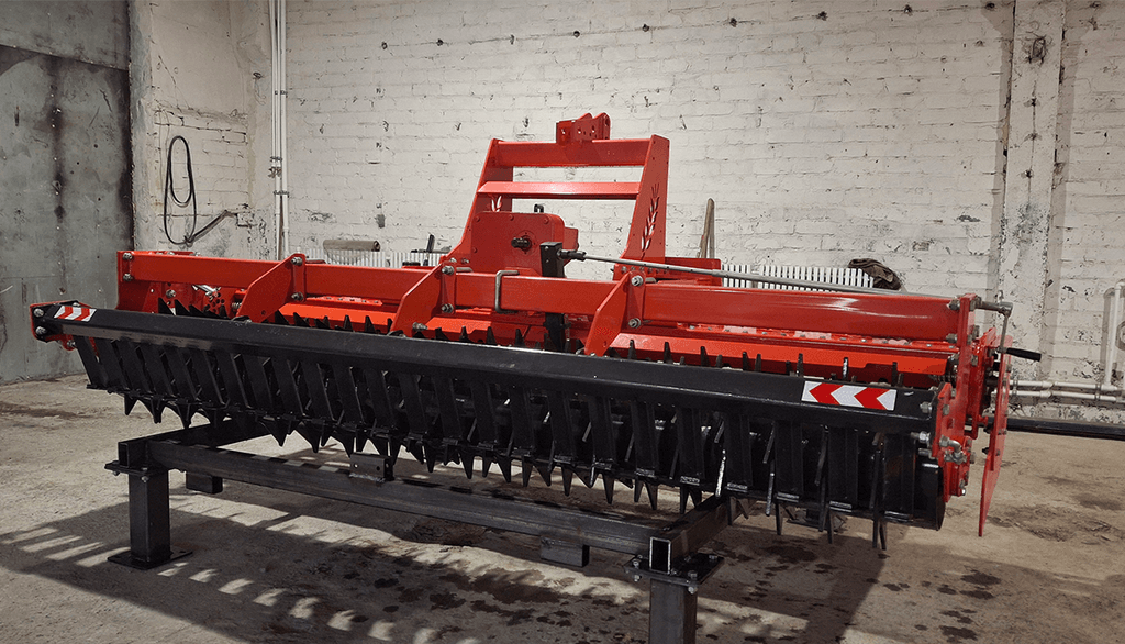 Активная почвофреза DOBERKMET IBQ300-L Heavy Power Harrow Культиватор обеспечивает равномерное распределение мелкой и крупной почвы, предотвращая образование корки на поверхности. Вращение зубьев оказывает горизонтальное давление, что предотвращает образование твердого слоя в глубине. Почвофреза приспособлена для работы как на вспаханной, так и на невспаханной земле, успешно адаптируясь к различным почвенным условиям. Специальные зубья обеспечивают идеальное перемешивание почвы, даже при наличии большого количества остатков растений. Культиватор гарантирует идеальное выравнивание почвы за счёт реечной полосы и движения ролика. Общие характеристики: Ширина оборудования — 3036 мм Ширина захвата – 3000 мм Глубина обработки грунта – 260 мм Редуктор – (односкоростной) Скорость вращения вала отбора мощности – 540 оборотов в минуту Количество ножей – 24 Форма ножей – зубья Вес – 1400 кг Минимальная мощность трактора – 100 л.с.