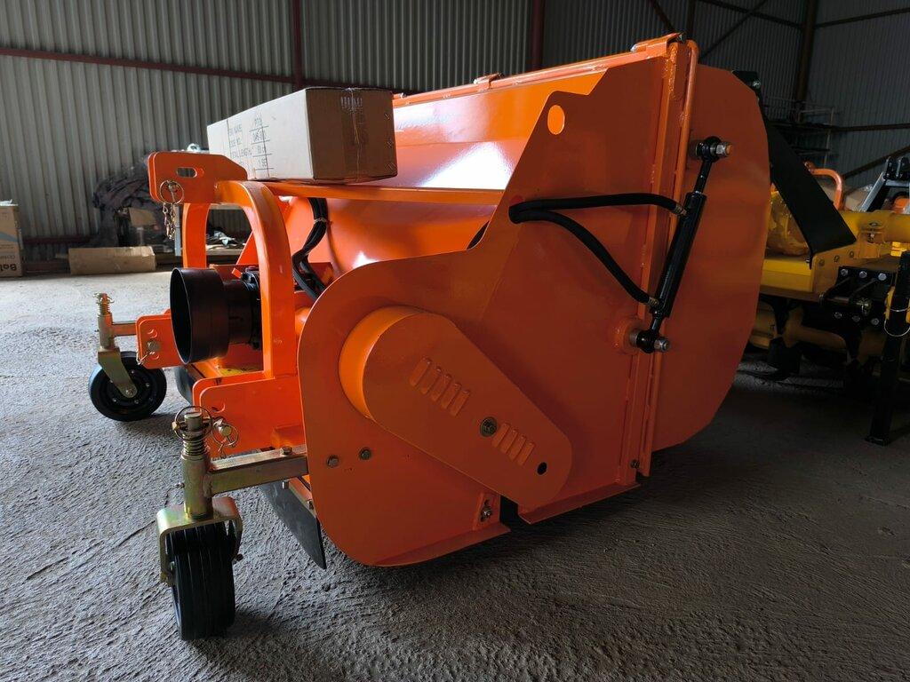 FC мульчер (молотковая косилка) FC мульчер со сбором — хорошо продаваемый продукт в Европе и Америке. Он включает функции кошения и сбора травы.Подходит для трактора 20-50HP. Мульчер со сборником биомассы предназначен для кошения газонов в парковых зонах, лесных питомниках, для очистки площадок от бурьяна, сорняков и мелкого кустарника с диаметром стебля до 5 см. Подъемный механизм и травосборник косилки — бункер для сбора травы, позволяют собирать, транспортировать и осуществлять выгрузку скошенного материала в требуемое место. Косилка комплектуется усиленной рамой и тяжелыми ножами, что говорит о высокой надёжности агрегата. Технические характеристики: Габариты (Д×Ш×В): 1345 × 1435 × 1035 мм Ширина скашивания: 1150 мм Объем коллектора: 0.55 м³ Вес: 332 кг Требуемая мощность трактора: 35–70 л.с.