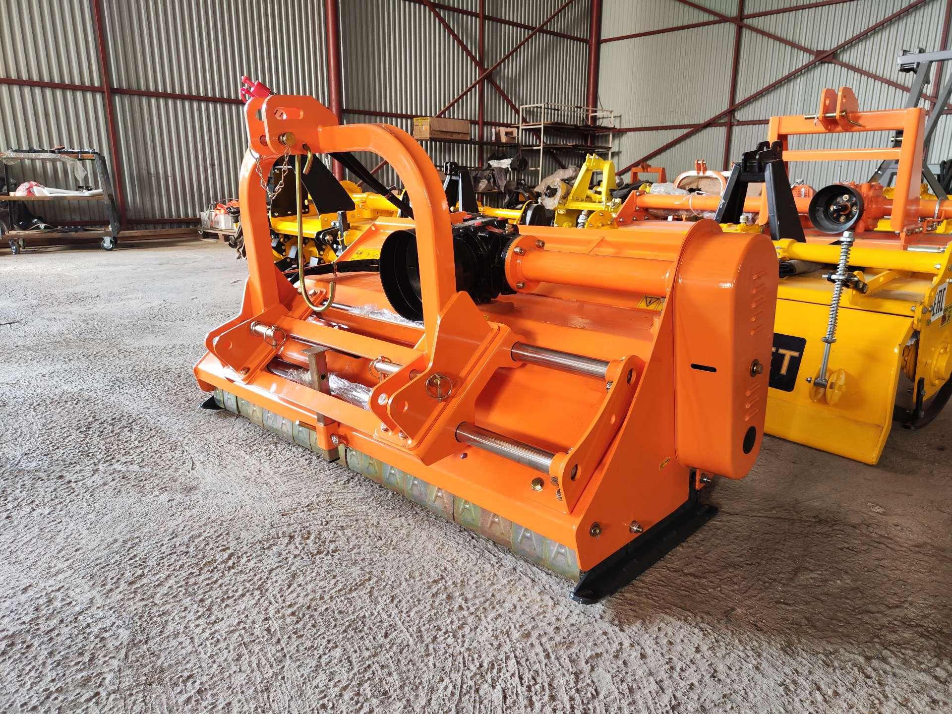 Оснащена гидравлическим боковым смещением — позволяет оператору смещать рабочую зону вправо-влево прямо с места, удобно работать вдоль изгородей, столбов и канав. Идеален для коммунальных служб, обочин, фермеров, садов и парковых зон. Берет ветку до 4 см. Общие характеристики: Ширина орудия: 1900 мм Ширина захвата: 1720 мм Скорость вращения вала отбора мощности: 540 об/мин Количество ремней: 3 шт. Вес: 365 кг Количество молотков: 28 Минимальная мощность трактора: от 40 л.с.