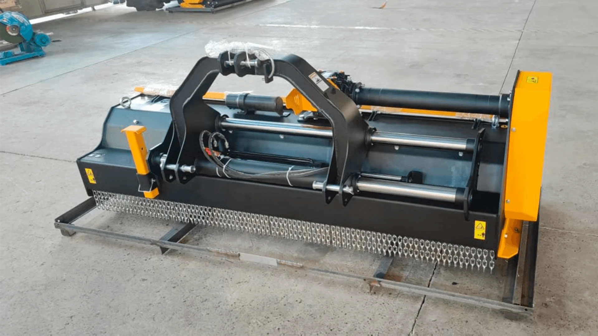 DOBERKMET PROFESSIONAL DK PRO 240 — это косилки-измельчители профессиональной серии, которые были специально разработаны для профессионального удаления и измельчения пожнивных остатков на лугах, полях и в фруктовых садах. Орудие хорошо подойдет не только для сельскохозяйственных работ, но и для ухода и расчистки территории. DK PRO 240 идеально подходят для использования с тракторами мощностью от 70 до 100 лошадиных сил. Данные орудия обеспечивают высокую производительность и эффективность, что делает их идеальным выбором для профессионалов в области сельского хозяйства. DOBERKMET PROFESSIONAL DK PRO 240 предлагает уникальные преимущества, такие как гидравлическое боковое смещение, регулируемая высота среза, автоматический натяжитель ремня. Общие характеристики: Габариты орудия – 2600*1044*1012 мм Ширина захвата – 2400 мм Скорость вращения вала отбора мощности – 540 оборотов в минуту Диаметр рабочего вала – 170 мм Расстояние от центра редуктора: — до левого края – см — до правого края – см Количество ремней – 5 Вес – 760 кг Диаметр измельчаемой поросли – до 7-8 см. Количество молотков (ножей) – 22 Вес молотка – 950 гр Минимальная мощность трактора – 70 л.с.