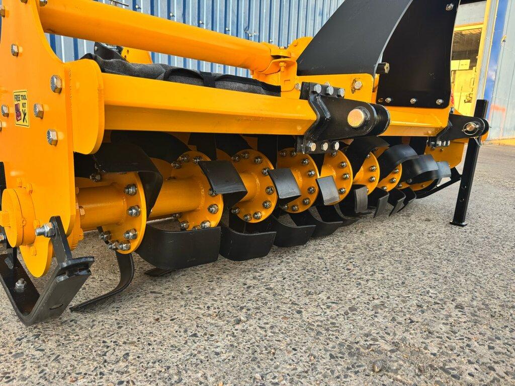 Почвофреза AF – навесное оборудование для обработки любых типов почв путем взрыхления, перемешивания слоев грунта и выравнивания поверхности. Обрабатывает большую площадь грунта за меньшее время. Эффективная работа и хорошее качество измельчения на любых почвах, как сухих, так и влажных. Обеспечивает более глубокую обработку почвы и экономит расход топлива. Прочная конструкция обеспечивает беспроблемную работу и долговечность. За счет сбалансированности веса и требований к качеству обработки почвы фреза надежный помощник в узких междурядьях и на маломощных тракторах. Общие характеристики: Общая ширина – 1820 мм Ширина захвата – 1800 мм Длина – 800 мм Глубина обработки грунта – 180-230 мм Тип редуктора – Односкоростной Максимальная мощность редуктора – 40 kw Тип привода – шестеренчатый Скорость вращения вала отбора мощности – 540 об/мин Количество фланцев – 8 Предохранительное устройство трансмиссии – срезной болт Возможность регулировки крепления навески фрезы – да Форма ножей – Г-образные Количество лезвий – 48 Вес (прибл.) – 320 кг Рекомендуемая мощность трактора – от 40 л.с. Страна производителя – Индия Гарантия – 1 год
