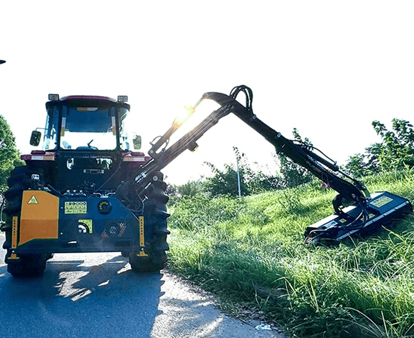 Гидравлическая косилка-манипулятор Многофункциональная установка для обочин, кюветов, склонов и труднодоступных зон. Оснащена мощной гидравлической стрелой с вылетом до 4 м и возможностью работы под углом от –45° до 90°. Предназначена для скашивания травы, кустарника и поросли. Независимая система охлаждения, электрическое управление, усиленные гидромоторы и цилиндры обеспечивают высокую надёжность и эффективность даже в тяжёлых условиях эксплуатации. Общие характеристики: Ширина захвата – 1000 мм Мин. мощность трактора – 51–70 л.с. Скорость вращения ВОМ – 540 об/мин Гидравлическое давление – 16 МПа Объём масляного бака – 90 л Количество молотков – 18 Вес – 552 кг