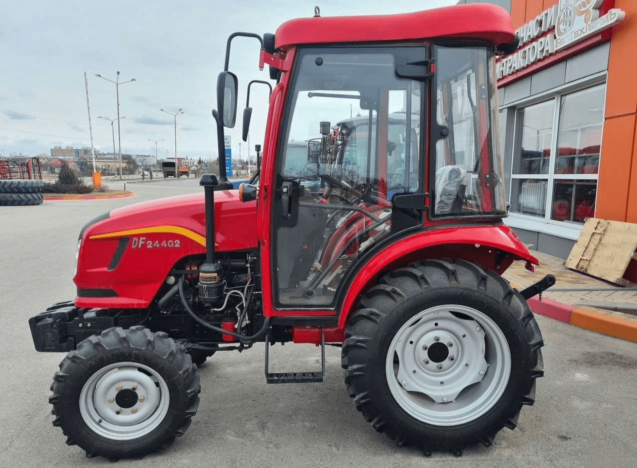 Тракторы Dongfeng (Донгфенг)- это самые качественные сельскохозяйственные машины, производимые в Китае. Тракторы DF производятся в КНР фабрикой Changzhou Dongfeng Agricultural Machinery Group. Трактор Dongfeng DF-244 G2 с кабиной — универсальная машина для ведения сельского и коммунального хозяйства, которая обладает целым комплексом преимуществ: начиная с довольно надежного двигателя, заканчивая наличием реверса и возможностью подключать дополнительное навесное оборудование. Основное преимущество, которым обладает минитрактор Dongfeng DF 244 G2 с кабиной — цена. Она относительно невысока и довольно выгодна в сравнении с аналогичными тракторами корейского и японского производства. Однако это вовсе не показатель сомнительного качества. Напротив — компания Донфенг предлагает одновременно бюджетные и эффективные варианты для малых частных и коммунальных хозяйств. Трактор Dongfeng DF-244 G2 с кабиной оснащен гидроусилителем руля, что обеспечивает легкость управления. Масса трактора в сухом виде (без масел, топлива и охлаждающей жидкости) составляет 1340 кг. Трактор с 2 парами гидровыходов, счётчком моточасов, улучшенным пружинным сиденьем Характеристики Мощность, л/с: 24 Тип двигателя: Дизельный Количество цилиндров: 3 Номинальный расход топлива, г/ кВт. Час: ≤255 Максимальный крутящий момент, Нм: ≥96.8 Тип сцепления: Сухое, двойное Реверс КПП (8+8) ВОМ, об/мин: 540/1000 Размер шлицевого соединения: 6-зубьев Колесная формула: 4x4, полный привод Размер задних колес, мм: 11.2-24 Размер передних колес, мм: 6,50 - 16 Гидроусилитель руля (ГУР): есть Кабина с отоплением: есть 2 пары гидровыходов: есть Габаритные размеры, мм: 3450 х 1550 х 2350 Колесная база, мм: 1710 Колея передней оси, мм: 1200 Колея задней оси, мм: 1200 Дорожный просвет, мм: 358 Масса: 1340