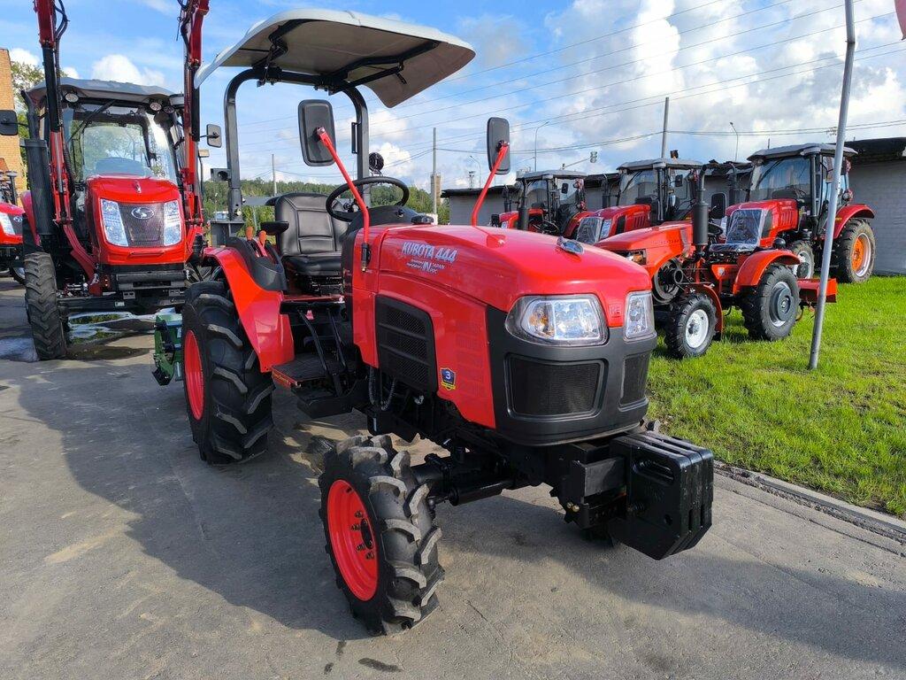 Трактор Kubota Кентавр Т-444 MASTER HST (Perkins) STD agri 7,00-12 / 11,2-16 Торговая марка: Kubota | Кентавр Происхождение: Беларусь-Китай Гарантия: 3 года Двигатель: Perkins 477, 40 л.с., дизельный, 4 цилиндра, 1.5 л, жидкостное охлаждение, электростартер, евро-4. Трансмиссия: Полный привод 4х4, гидростатическая КПП (бесступенчатая), блокировка заднего дифференциала. Гидравлика и навеска: Тяговый класс 0.6, трёхточечная навеска (кат.1), грузоподъёмность 750 кг. Распределитель для подвеса, производительность насоса 20 л/мин. ВОМ: Независимый, шлицевой (6 шлицов), частота вращения 750/3460 об/мин. Характеристики: Макс. скорость 29.2 км/ч, радиус разворота 2.5 м, дорожный просвет 320 мм, колёсная база 1660 мм. Масса: 958 кг (без утяжелителей), до 994 кг с опциональными утяжелителями. Кабина: Отсутствует. Комфорт: Мягкое регулируемое сиденье, ровный пол, резиновые коврики, регулируемая рулевая колонка. Дополнительно: Прицепное устройство, ходоуменьшитель, гидроусилитель руля, плавающий режим навески, парковочный тормоз.